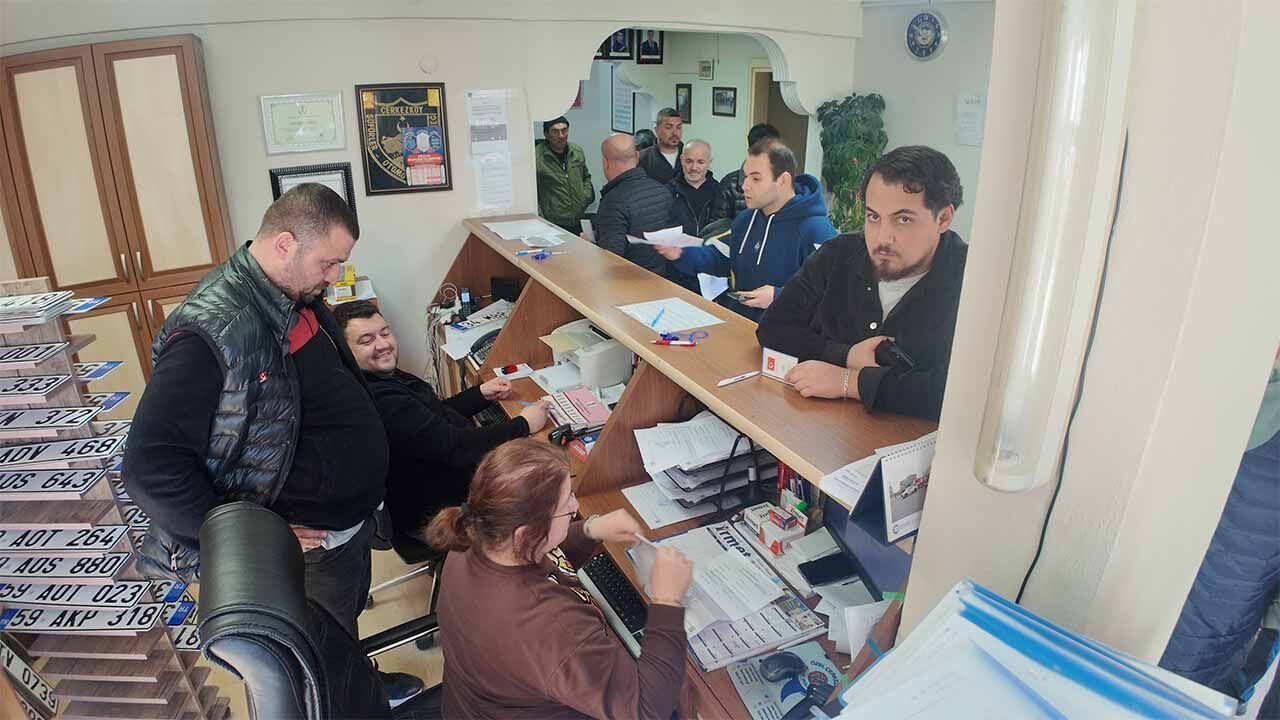 Araç sahipleri, Polis ya da jandarma ve noterdeki işlemlerini tamamladıktan sonra Şoförler odasına giderek plaka basım işlemi gerçekleştiriyor.