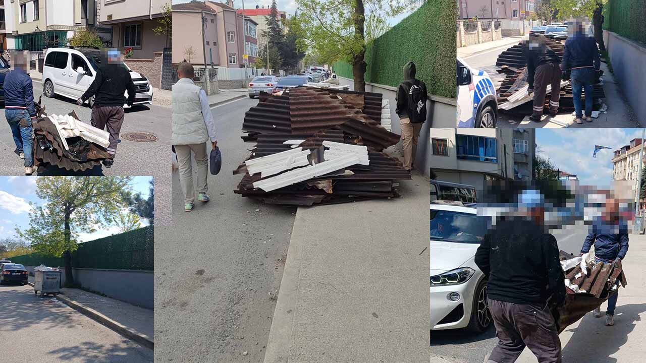 Uyarı sonrası atıkları atanlar, kaldırıma bırakılan tüm malzemeleri toplayarak apartman bahçesine taşıdı.