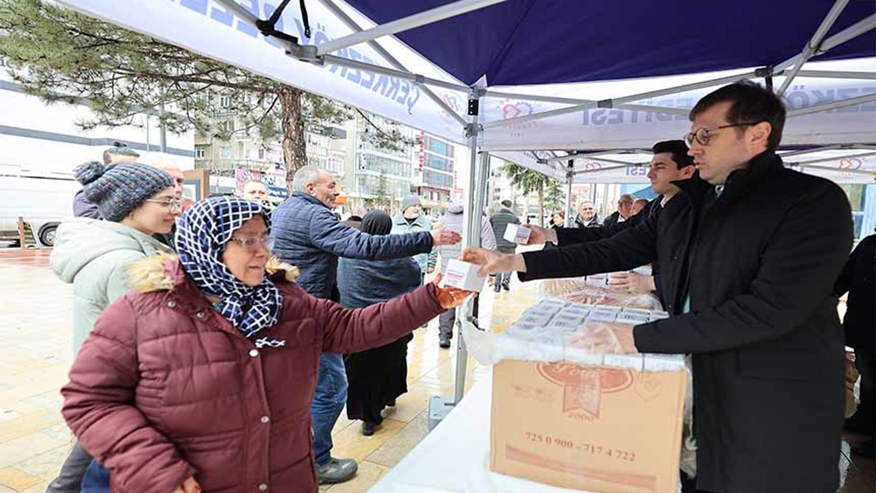 Berat Kandili nedeniyle Sosyal Hizmetler Müdürlüğü tarafından kent genelindeki kamu kurum ve kuruluşları ile Cumhuriyet Meydanı’nda oluşturulan stantta vatandaşlara kandil simidi ikramında bulunuldu.