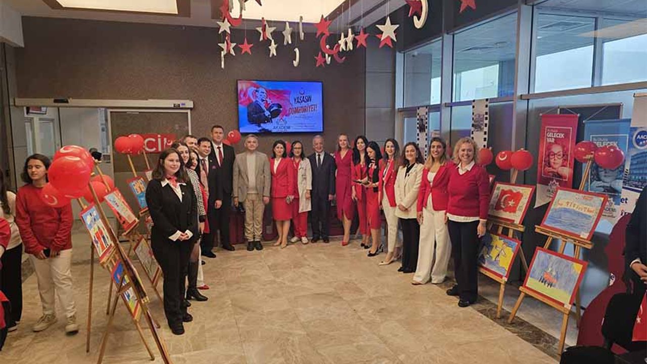 Hastane girişinde düzenlenen sergide, öğrencilerin fırça ve kalemlerinden dökülen resimler sergilenirken, Cumhuriyet ile Atatürk’ün sevdiği şarkıları öğrenciler tarafından çalındı ve seslendirildi.