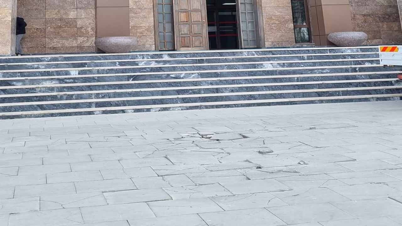 Ancak aradan geçen kısa sürede, bina girişinde ve bahçesinde kullanılan taş parkelerin birçoğunun kırıldığı görüldü. Vatandaşlar, yeni yapılan bir kamu binasında bu tür sorunların bu kadar erken ortaya çıkmasına tepki gösterdi.