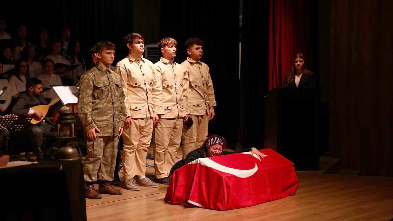 12 Mart İstiklal Marşı’nın Kabulü ve Mehmet Akif Ersoy’u Anma Günü programı Ertuğrul Gazi Anadolu Lisesi tiyatro, oratoryo ve koro ekibinin birlikte hazırladığı “KORKMA!” adlı gösteriyle devam etti. Gösteri salondakiler tarafından büyük bir gurur ve heyecanla izlendi.