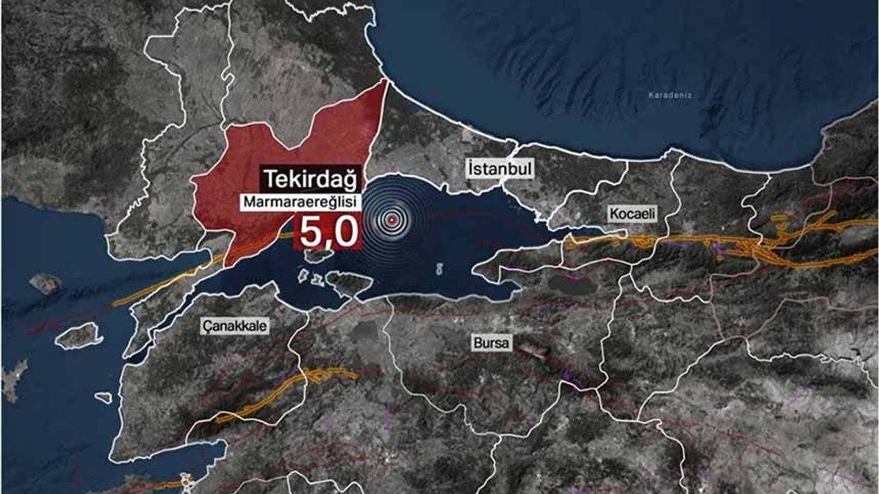 AFAD, Marmara Denizi'nin Marmaraereğlisi açıklarında saat 14.55'te 5 büyüklüğünde deprem meydana geldiğini bildirdi.
