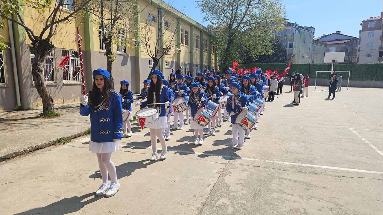 Mavişler bando takımı ile ellerinde Türk bayrakları yüzlerce çocuk bugün Yıldırım Beyazıt Mahallesi’nde sokaklarda dolaştı.