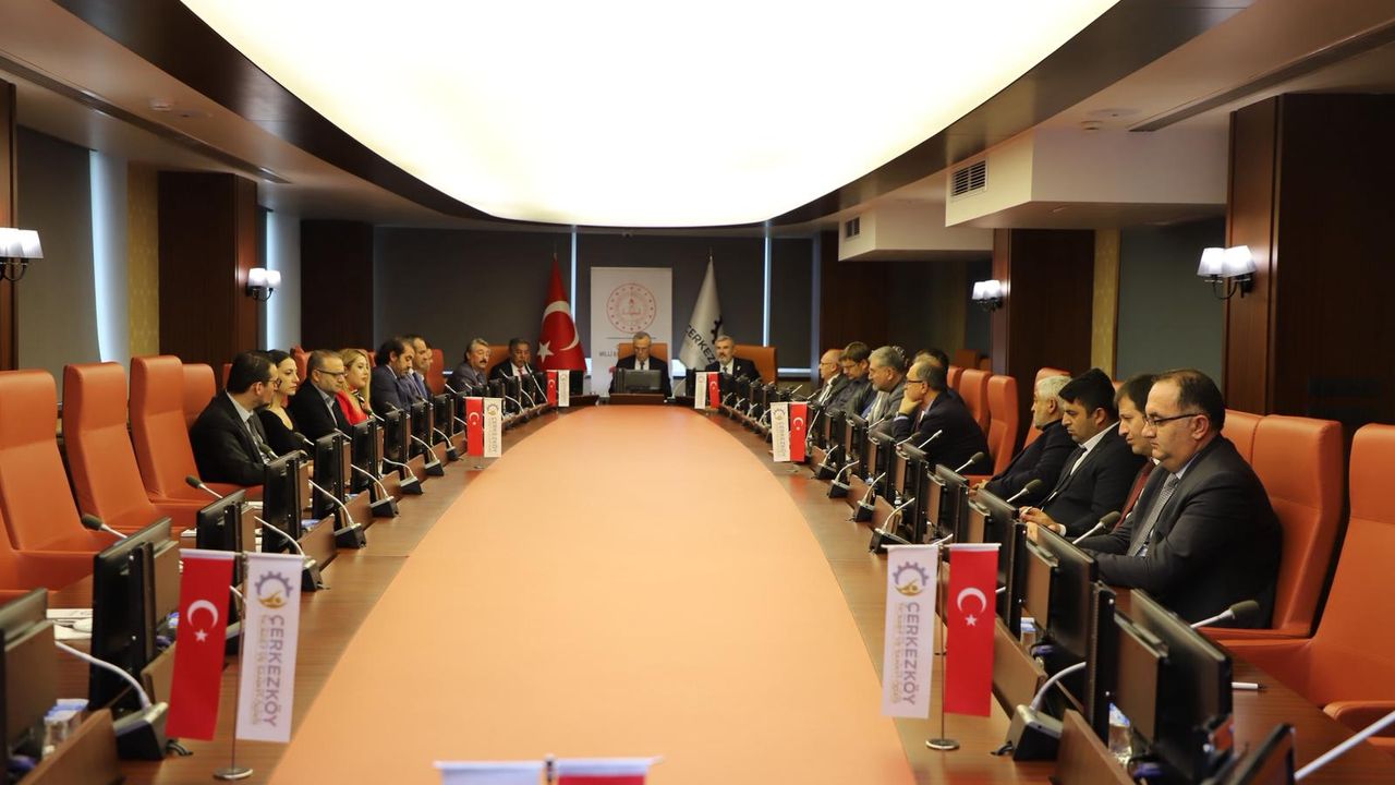 Çerkezköy Kaymakamı Nazmi Günlü’nün başkanlığında, İlçe Milli Eğitim Müdürü Erday Arslan, ÇOSB Başkanı Eyüp Sözdinler, ÇOSB Başkanı Ahmet Çetin, ve paydaşların katılımıyla “Meslekler Gelecekle Buluşuyor” projesinin rapor sunumunu gerçekleşti.