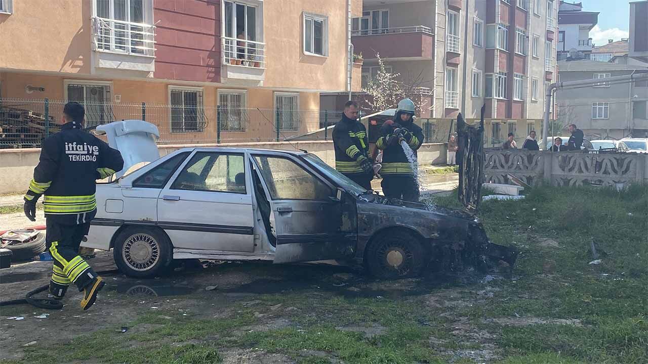Arabacı Sokak üzerinde park halinde olan otomobilin motor kısmından alevler yükseldiğini görenler durumu 112 Acil Çağrı Merkezine bildirdi.