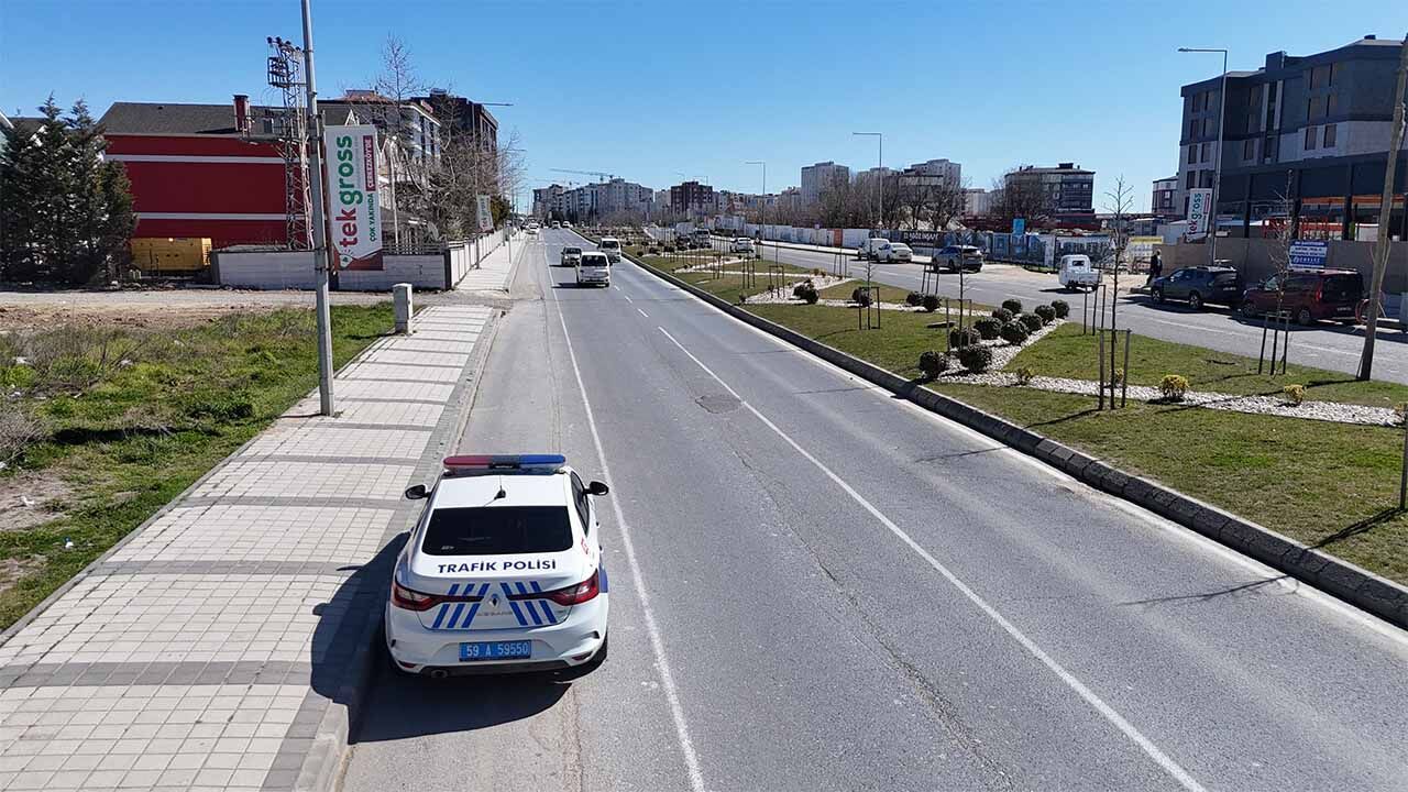 Çerkezköy İlçe Emniyet Müdürlüğü ekipleri, hız sınırının 50 kilometre olduğu caddenin hem çıkışı hem de iniş kısmında çift yönlü olarak radar uygulaması yaptı.
