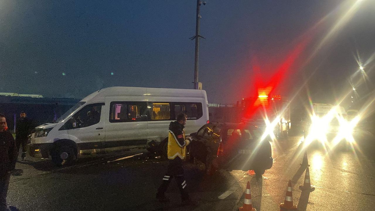 Kaza, Çerkezköy Organize Sanayi Bölgesi 20 Sokak'ta meydana geldi. Kavşakta servis minibüsü ile otomobil çarpıştı.