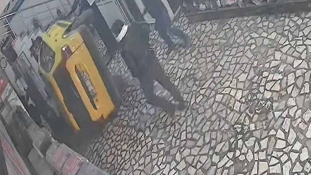Şans eseri yaralananın olmadığı olayda, ticari taksinin çeşitli noktalarında göçükler ve ezilmeler oluştu. Yaşanan anlar kameraya yansıdı.