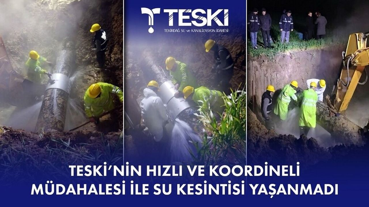 Kısa sürede bölgeye ulaşan TESKİ ekipleri, arızanın tespiti, kazı çalışması, onarım ve hattın yeniden devreye alınması süreçlerini sabaha kadar süren zorlu ve teknik çalışmayla koordineli bir şekilde tamamlayarak su hizmetinin kesintisiz devam etmesini ve vatandaşlara hissettirilmeden arızanın giderilmesini sağladı.