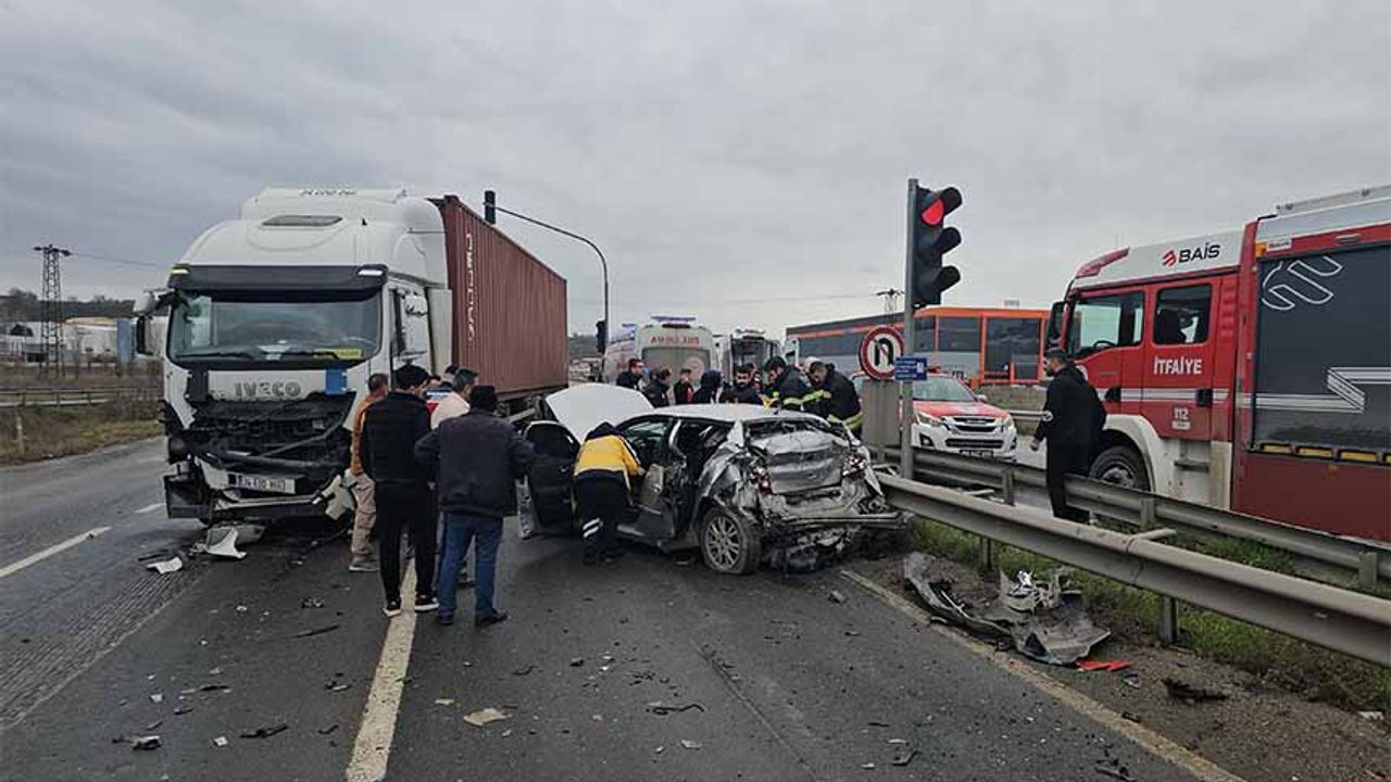 Çerkezköy istikametine giden ve ışıklarda bekleyen B.A. yönetimindeki otomobile, arkadan gelen S.S. idaresindeki tır çarptı.