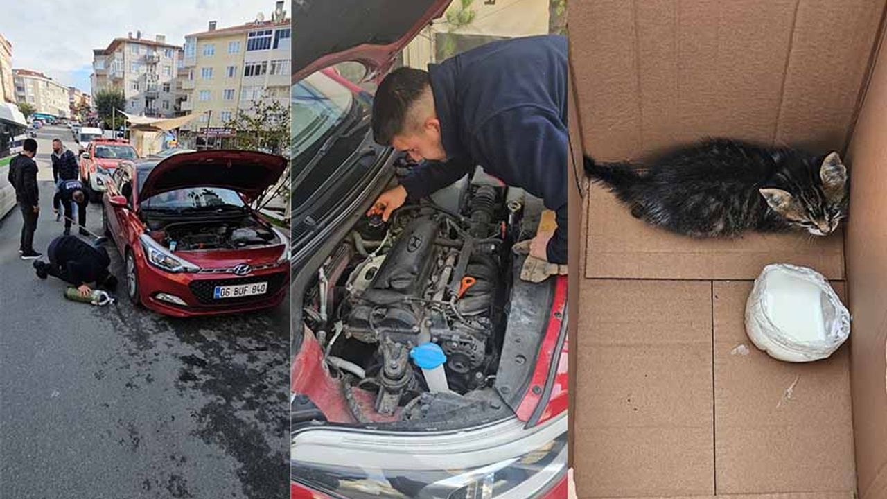 Soğuktan üşüyen iki yavru kedi, Gazi Mustafa Kemal Paşa Mahallesi Kosovalı Sokak’ta park halinde olan bir otomobilin motor bölümüne girdi. Aracını çalıştırmak isteyen sürücü, motor kısmından gelen sesler üzerine kaputu açınca kedileri fark etti.